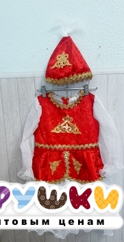 Главная / Товары по сезону / Новогодний ассортимент / Новогодние костюмы / Национальные костюмы / Костюм новогодний "Кыз жорга" р-р 30-36 (красный с белыми вставками)