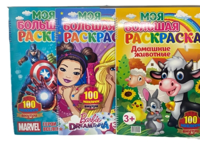Раскраска "Моя большая раскраска" 18 л. 34721 (100 наклеек)