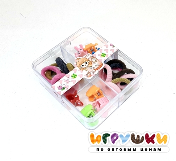 Резинки для волос в футляре (с крабиками. 6,5*7,5)