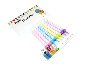 Свечи для торта 8 шт. (36-3), спиральки пастельные